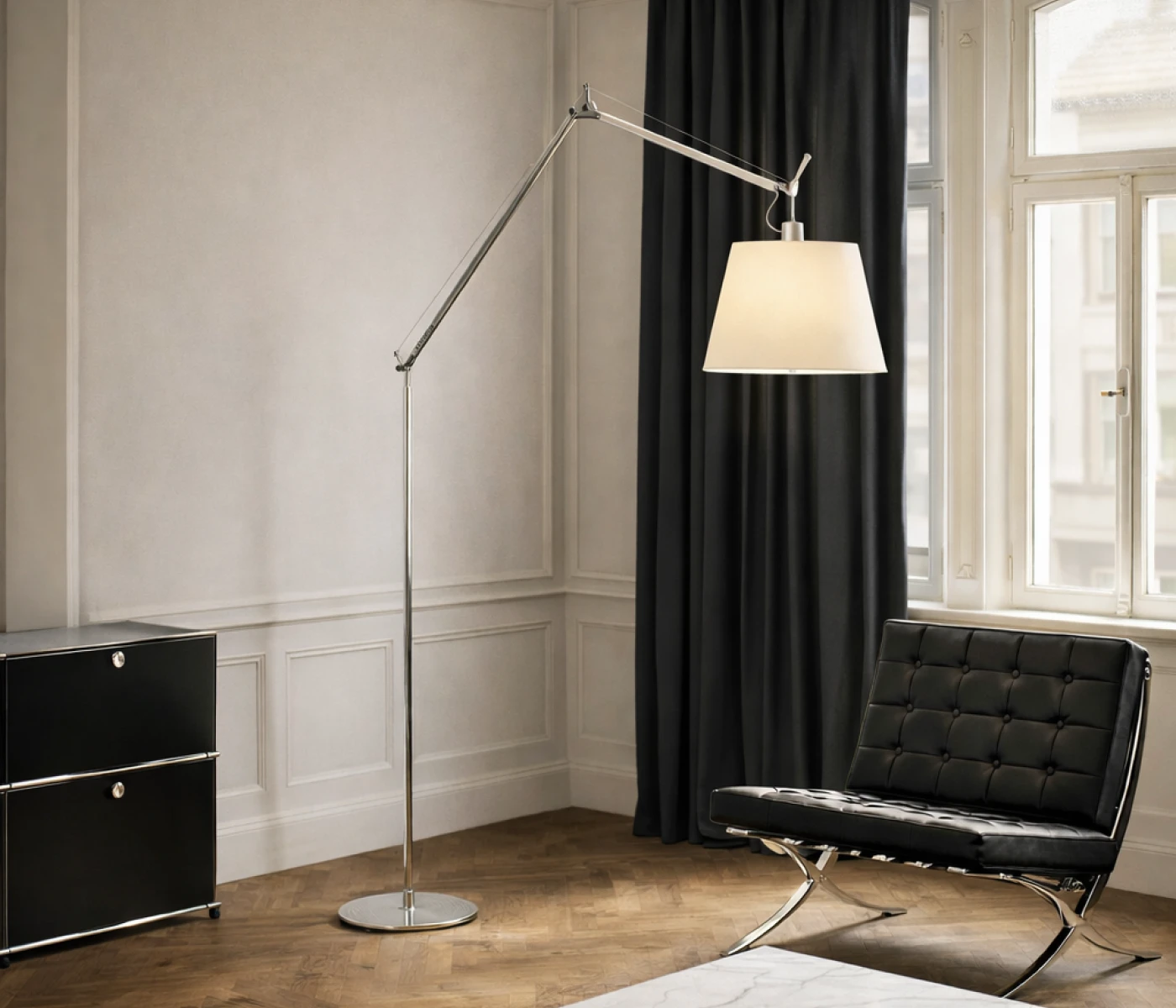 Die Tolomeo Tavolo verbindet präzise Ingenieursarbeit mit zeitlosem italienischem Design. Entwickelt von Michele De Lucchi und Giancarlo Fassina für Artemide, zeichnet sich die Leuchte durch ihr ausgeklügeltes Federzugsystem aus. Dieses erlaubt eine besonders flexible Ausrichtung des Lichts bei gleichzeitig stabiler Positionierung. Der filigrane Aluminiumarm, die sichtbare Mechanik und der charakteristische Leuchtenschirm verleihen der Tolomeo ihren technischen, fast architektonischen Ausdruck. Gleichzeitig wirkt sie elegant und leicht – ein Grund, warum sie sowohl in kreativen Studios als auch in hochwertigen Wohninterieurs eingesetzt wird. Heute gilt die Leuchte als moderner Designklassiker und ist Teil der permanenten Sammlung zahlreicher Designmuseen weltweit.