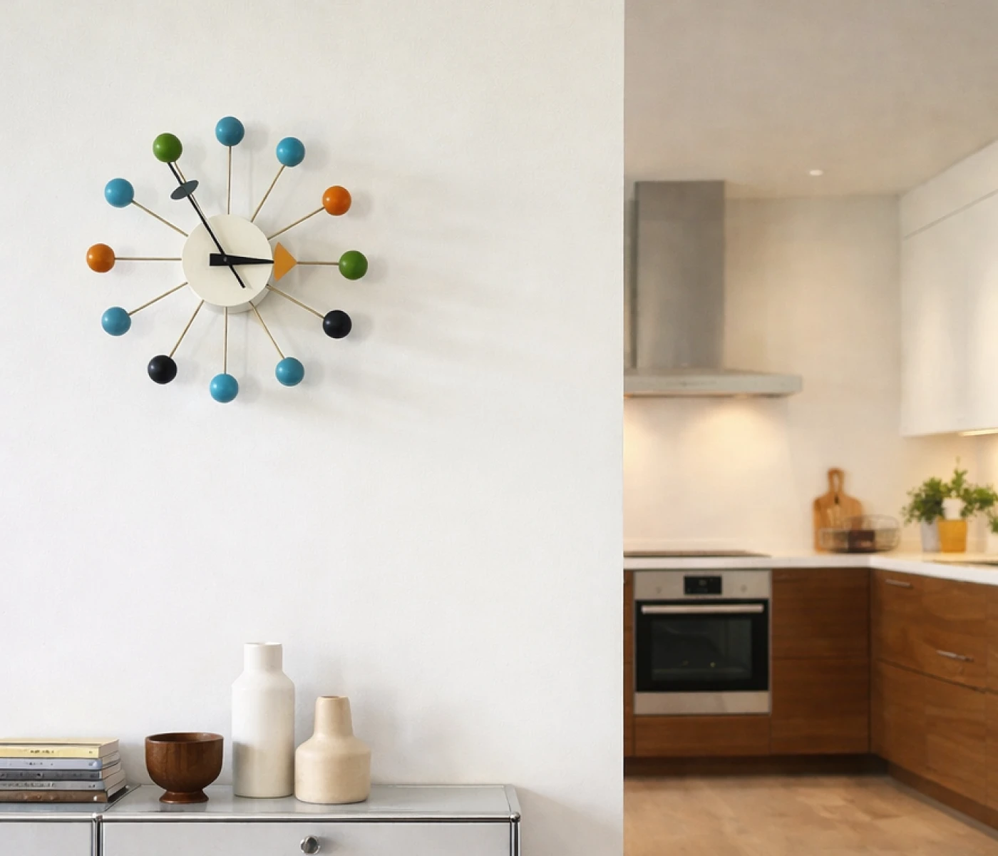 Die Nelson Ball Clock ist für mich ein perfektes Beispiel dafür, wie spielerisch und gleichzeitig zeitlos Design sein kann. Die farbigen Kugeln bringen Leichtigkeit an die Wand, ohne aufdringlich zu wirken. Gerade in eher schlichten Räumen setze ich sie gern als kleinen Designakzent ein.