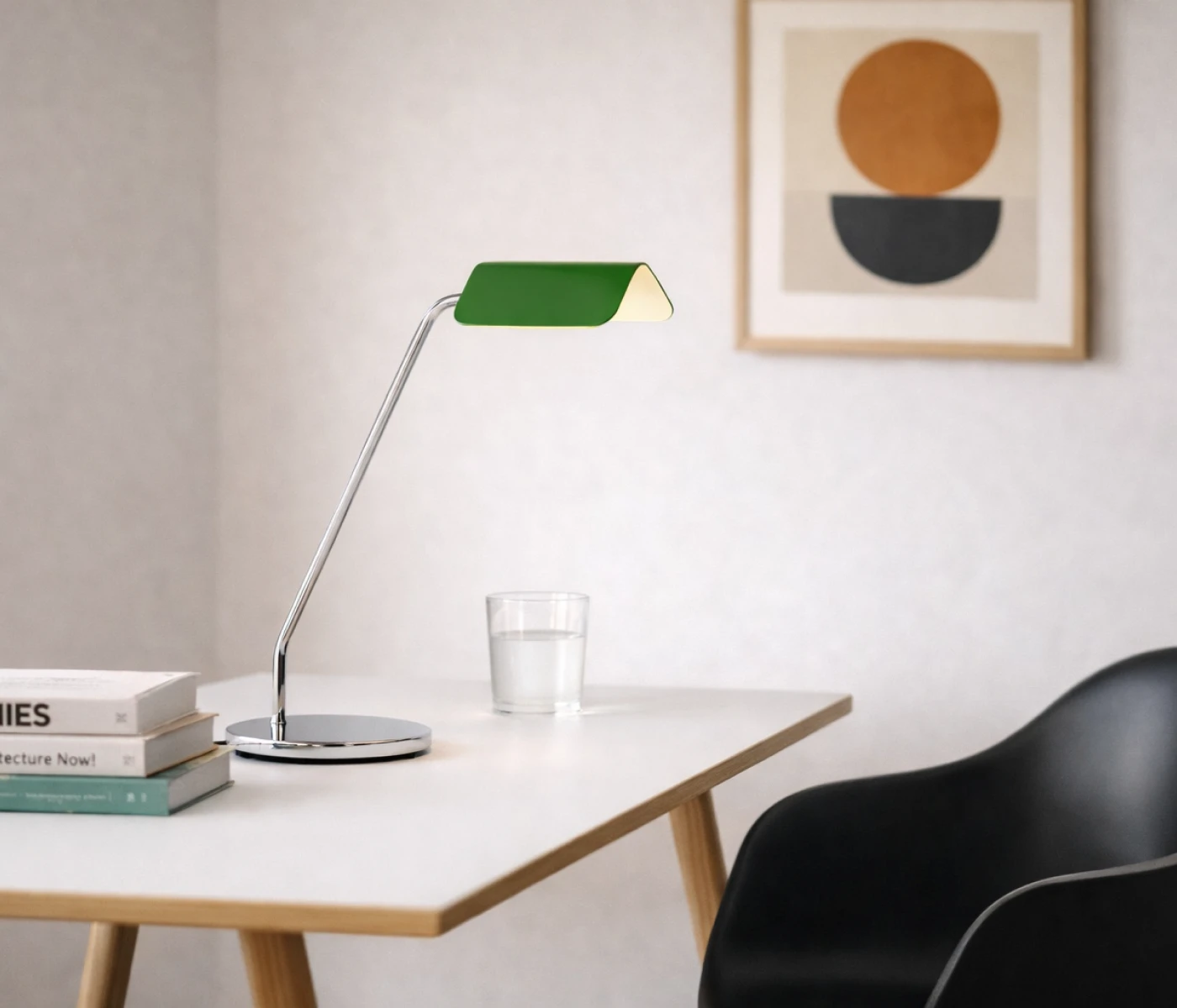Die Apex Desk Lamp von HAY gefällt mir durch ihre klare Form und den gefalteten Stahlschirm, der der Leuchte einen ganz eigenen Charakter gibt. Sie wirkt modern, leicht und bringt gleichzeitig ein sehr angenehmes Arbeitslicht auf den Schreibtisch. Für mich eine schöne Wahl, wenn Funktion und Design gleichermaßen wichtig sind.
